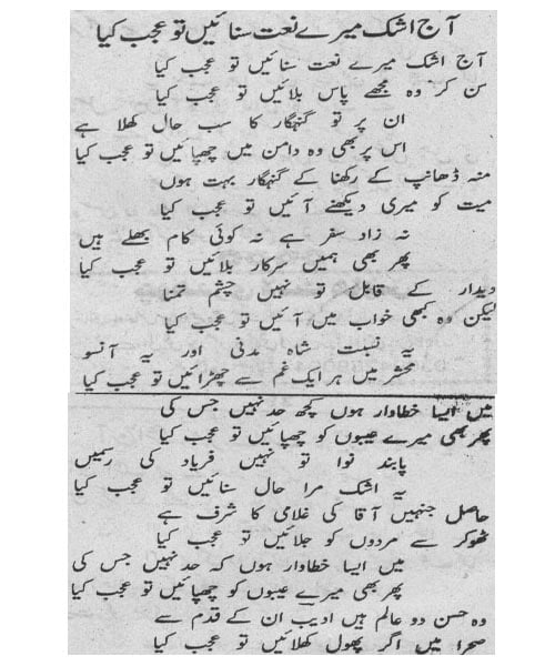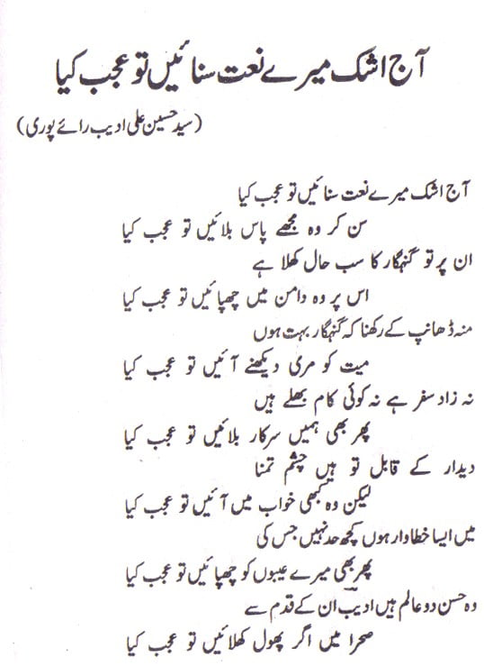 Aaj ashk mere naat sunain to ajab kya